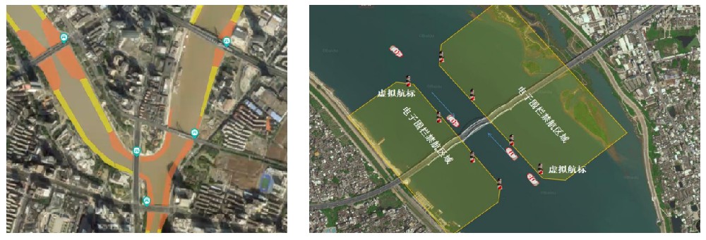 根据航道通航等级和宽度划定电子围栏区域,当摄像头识别到船只进行电子围栏区域,发出偏航预警。